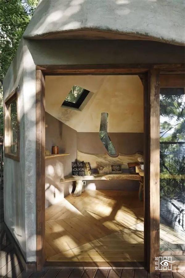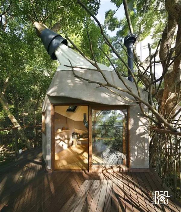 树屋周边还建设了一些配套设施供游客和孩子们玩耍,树屋顶部是一间类似茶室的空间,有着宽敞的露台,想必是惬意至极。