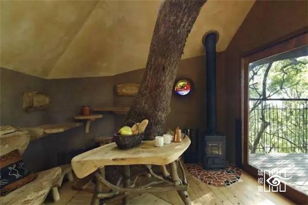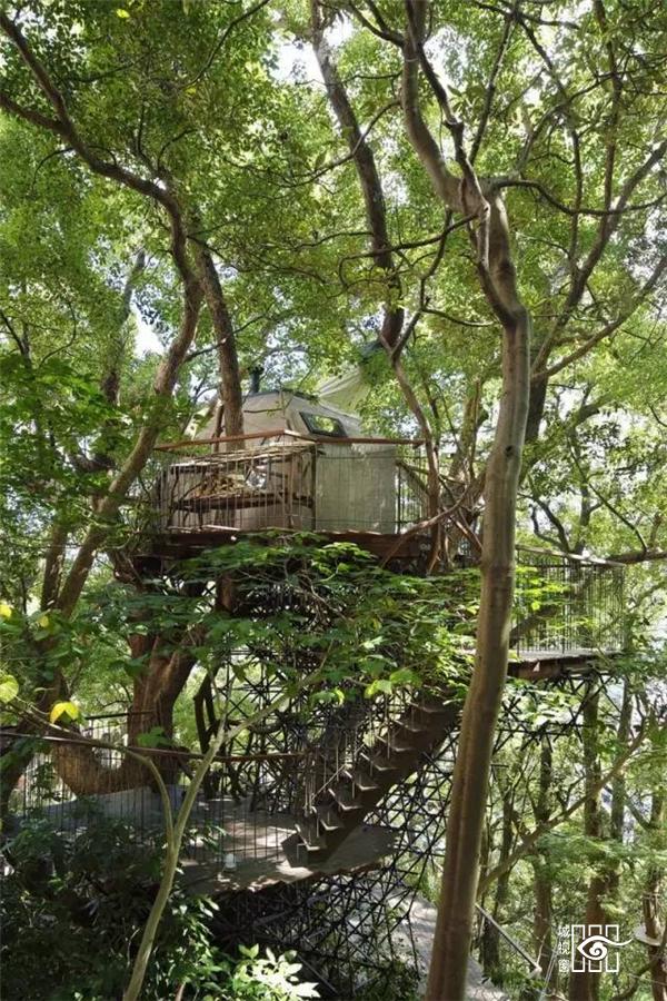 也就是说树屋的结构是独立的,并不是靠树干去受力。