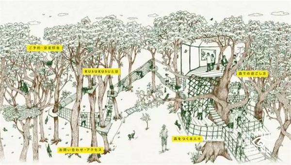 日本树屋第一人小林崇(Takashi Kobayashi)在过去的15年里建造了共120座树屋,虽然不是建筑师,但小林崇(Takashi Kobayashi)早已名扬海外。日本南部热海市Risonare度假区需要定制一款树屋,于是他们首先想到了小林,当小林踏勘了场地后便被这里的自然条件所触动。于是与NAP建筑设计事务所的设计师中村弘至(Hiroshi Nakamura)联手设计了这座日本最大的树屋建筑——Kusukusu。