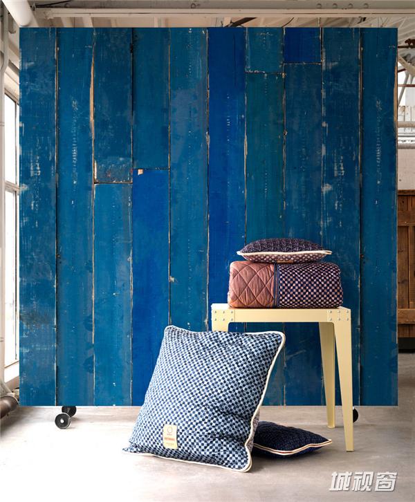 两面“木板墙”。关于那块“蓝色的废木板”,设计师Piet Hein Eek 说,“人们总是让我设计蓝色的墙纸。而当一批蓝色木板出现在我的工作室时,我就觉得我们确实该做点什么。”这个成品可比普通的“蓝色墙纸”让人惊喜得多。