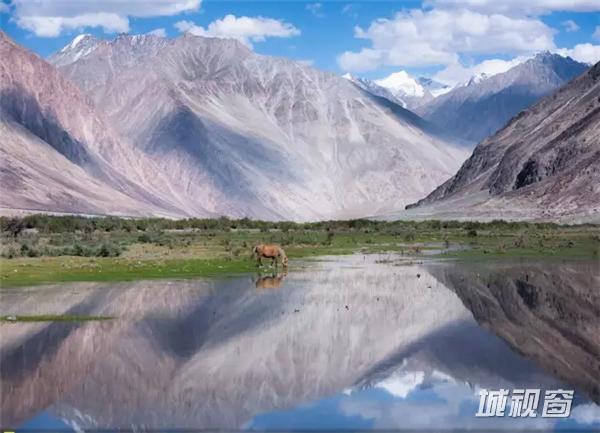 Photo and caption by Vijay Aitha。 野马在喜马拉雅山脉拉达克地区的努布拉谷觅食。