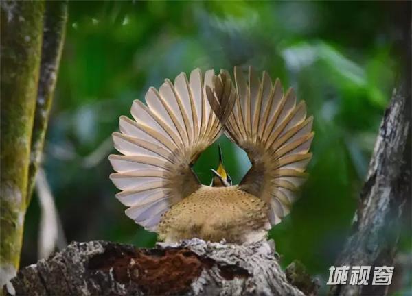 Photo and caption by Dean Jewell。 一只少年维多利亚风鸟正在练习求偶动作。