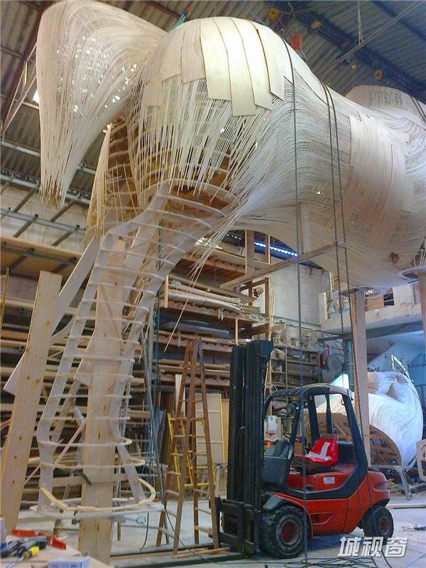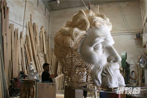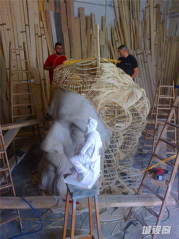 大部分的部件、纪念碑和雕塑由加西亚首先用木头对其进行加工。他们将最初的部件一一运送至现场,随后在现场组装。