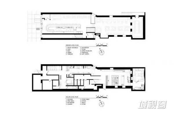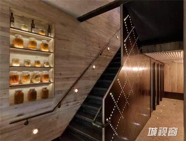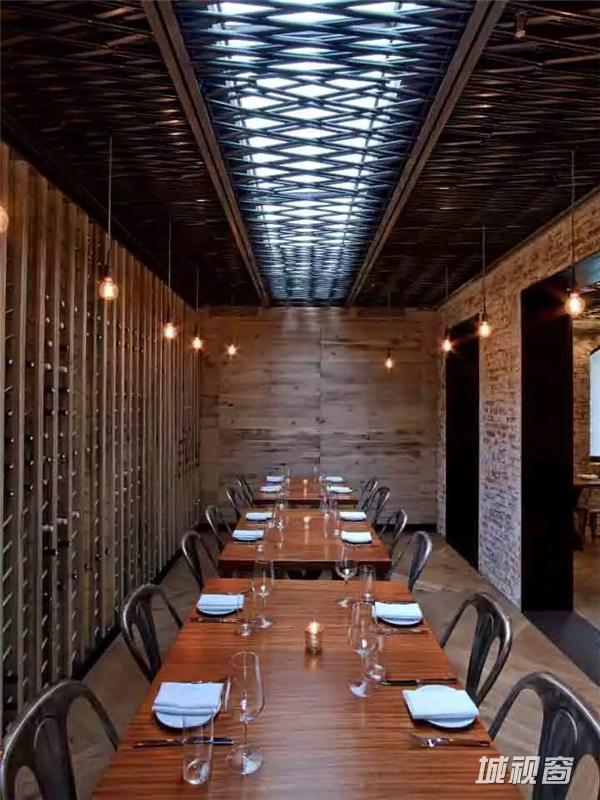 菱形的钢制楼梯至始至终在材料和图案的选择上都与整个餐厅的整体设计相匹配,即使是餐厅中最小的细节也格外精致到位。