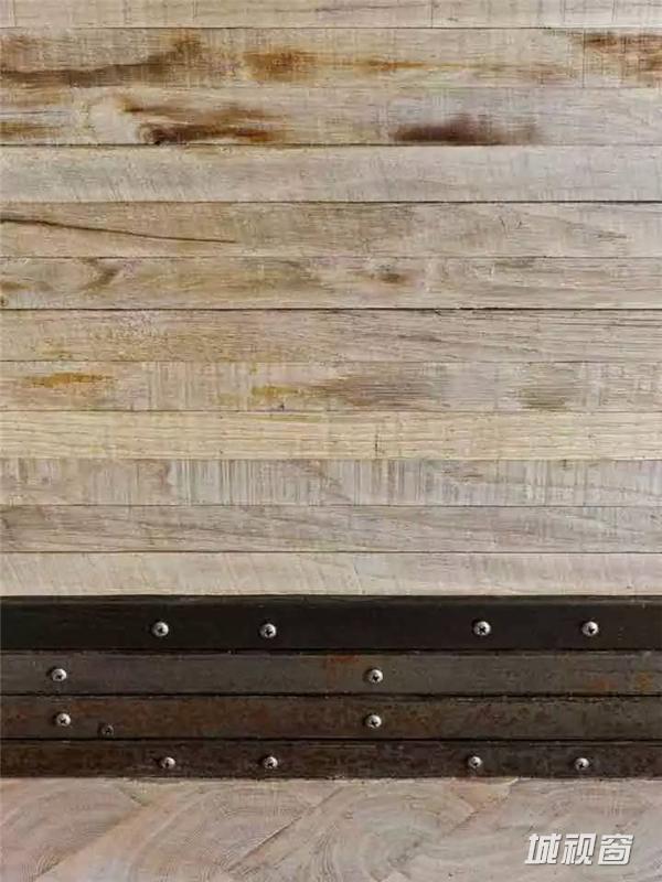 餐桌的底端同样采用了钢闸门的材料,搭配着木制的桌面,大方新颖,别具一格。