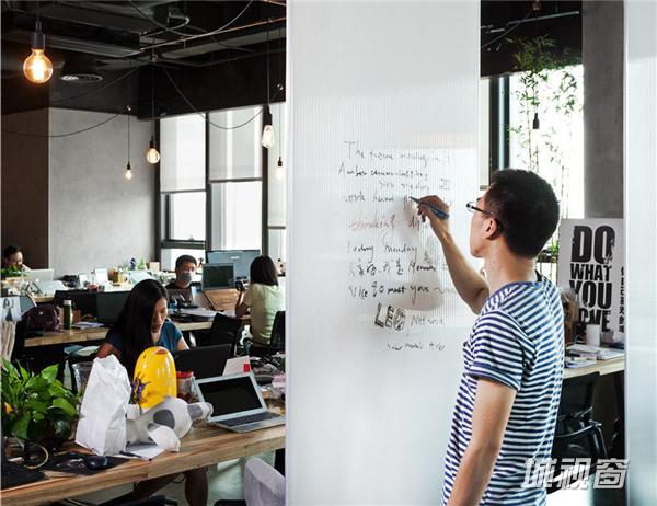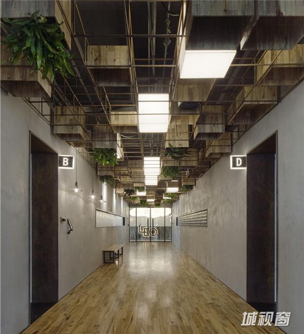 LEO方面参与设计的人告诉记者,这个设计也契合广告本身的性质,“你每天走过广告,可能关注也可能不关注,但不需要有一个强关注,我们不喜欢有个电视屏放在那边,所以用了这些字。“不过,LEO的员工却知道这里的设计,他们可以在上班路过的时候猜测讨论今天来的人。走廊的天花板上放了一个方格框架,有方灯和一些倒挂的植物,留出的空隙会填上有突出贡献的人的箱子,做成一个名人堂。植物并不能倒挂着生长,其实是要定期更换。公司想以此强调“逆生长”的概念,“让70后向80后看齐,80后向90后看齐”,以保持年轻的心态。