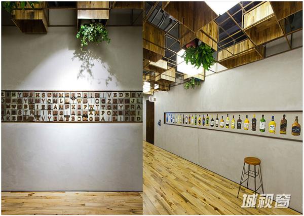 但作为一家会接待大量客户并提供创意的公司,他们还需要更多的细节去表达他们的创意,尤其是让过来谈事情的客户感受到。下电梯的走廊里,有两面灰色的水泥墙。一面是可以拼成不同图案的字母,另一面是酒瓶的油画,当有客户来的时候,会更改成相应的欢迎文字,也是英文的。不过刚来的人基本看不出来。