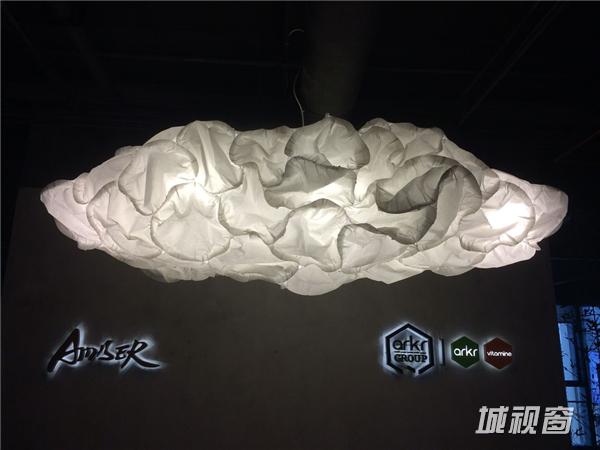 办公室的前台用了弗兰克·盖里设计的产品的灯“云”,是有褶皱、卷边和蓬松感的纸灯,轻盈、洁净,本身也代表着创意,在四周暗色调的环境中格外明亮,是全办公室最亮的地方。“云”的对面是玻璃门,能清晰地看到它的反光,当玻璃门因开关而晃动时,似乎是这朵云在晃动。