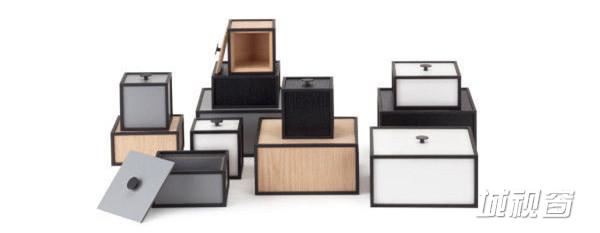 这些黑白灰的方形储物柜来自丹麦的设计公司by Lassens。方形柜子的正中间有个做拉手的小黑点,让这组极简的柜子带了点诙谐。大小不同型号和不同颜色可以自由组合,悬挂在墙上是有艺术气息的墙面装饰,也能在下面多安装一个支架成为茶几或者床头柜。