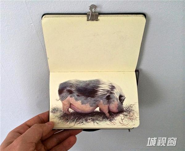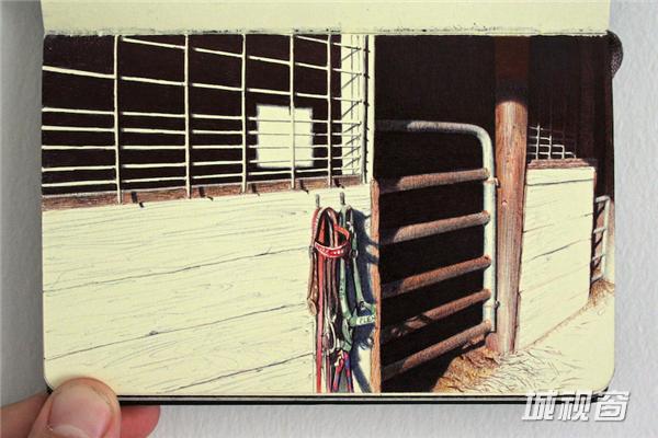 除了圆珠笔速写,桑切斯也是一个画家,其作品独特的风格完全不同于他的圆珠笔草图。速写帮助他通过大概的感觉来确定他们最终在更大的画布上的布局,而有一些,似乎在本子上看起来更舒服。