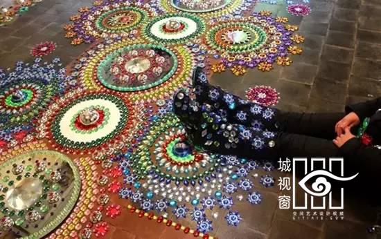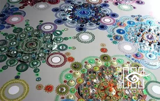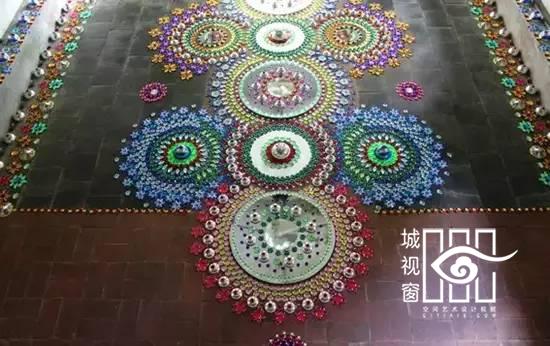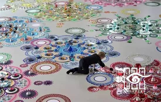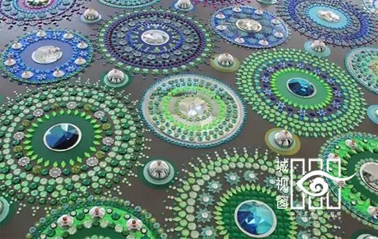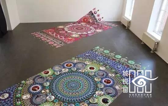 来自荷兰的艺术家Suzan Drummen用水晶、镀铬金属、珍奇的石头、镜面和彩色玻璃,拼接形成各种图案的地毯,非常璀璨美丽,就像一个有魔力的飞毯,让人们有一个视觉和感官上双重的体验。要装饰这样的艺术地板需要极大地耐心和毅力,Suzan Drummen却不怕麻烦,她享受的是拼贴的过程,在这个过程中能够收获很多的快乐。
