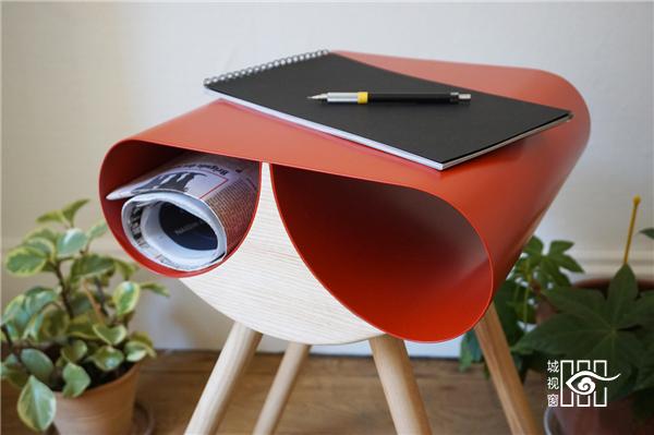 这套座椅名为Odo,采用粉末涂层钢板染色,木材选用了水曲柳。它得名于科学术语“蜻蜓目”,该目下的皆为食肉昆虫,包括蜻蜓。形态上,桌子“头”是由一个1.2毫米厚薄金属板结构制作。整体都采用彩色油漆上色。这个设计的主要目的是增加储物的可能性,如杂志、报纸、水瓶,都能收纳至桌子的“眼睛中”。