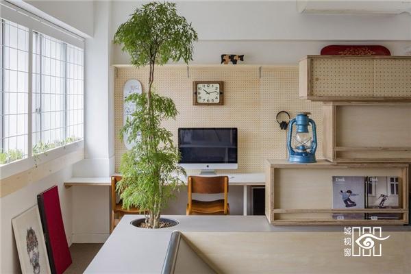 两边窗户相应按上了防护栏,种上绿色植物,让办公室显得清新自然。