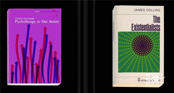 说回那55本动态的图书封面,它们的原书都历史久远,设计图案也大面积利用了线条与几何,这才给了设计师把他们变成动态的基础。这些书中包括1947年出版的《量子的奇怪故事》(TheStrange Storyofthe Quantum)、1949年出版的《存在与当下》(Existenceand Being)、1965年出版的《私欲与公需》(Private Wantsand Public Needs)等等。