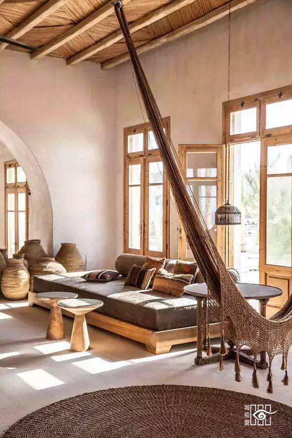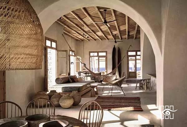 无论是室内的空间摆设还是室外的生活用品的使用材质,都是由传统的手工编织制成,真正做到了环保的同时也将波西米亚风格展现的淋漓尽致。
