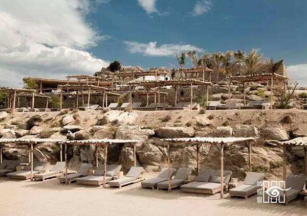 6000平方米的海滨酒店属于经典的白色水洗石制成的石屋。把人们带回到1960年当时希腊建筑的魅力和感受到当代现代主义的设机构想。