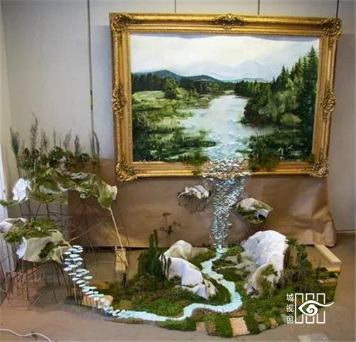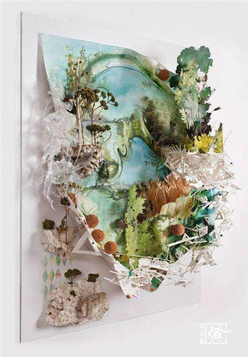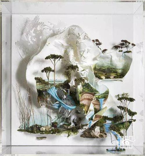 美国明尼苏达州的艺术家Gregory Euclide的混合媒介绘画作品,突破画布的限制,将风景延伸到框架之外。染过的头发,塑料袋,狗尾巴草泡沫等等,这些被人们所丢弃废品在Gregory Euclide的精心组合与绘制下,呈现出的是诗情画意山水画的生命状态;而这种深度窥视的立体视觉效果也拉近了作品与观众的距离。Gregory Euclide这次的画作也意在传递环保的讯息,让人们更有爱的去对待我们的生活环境!