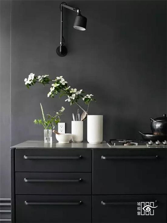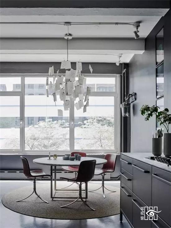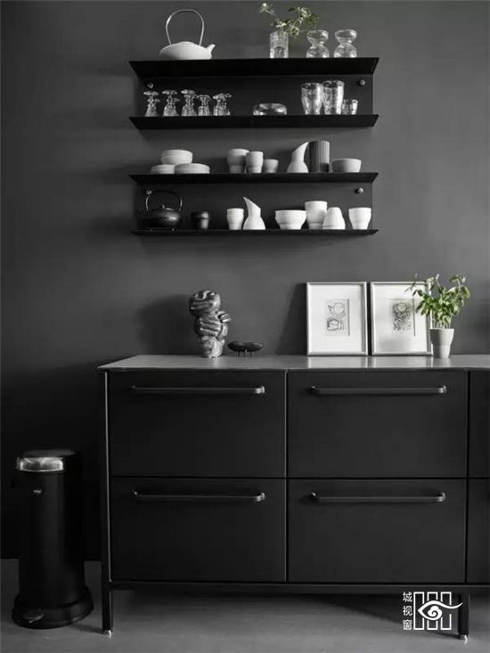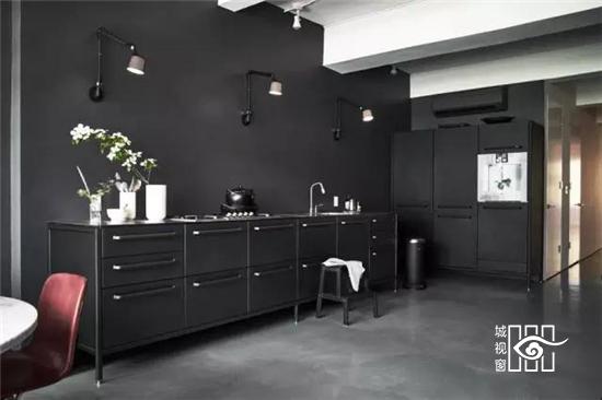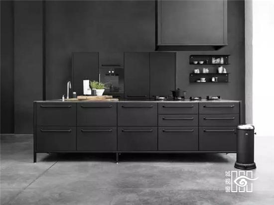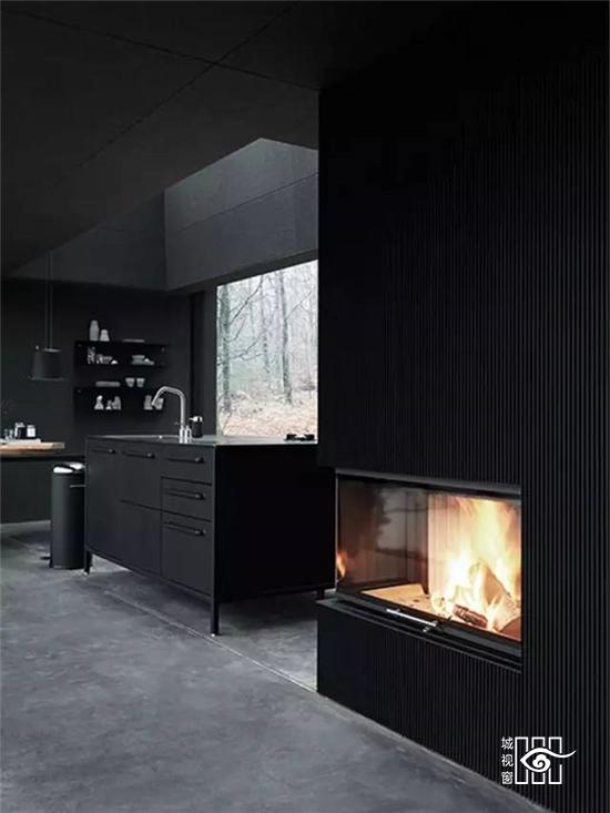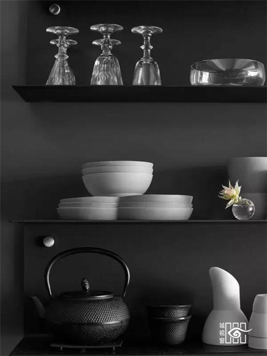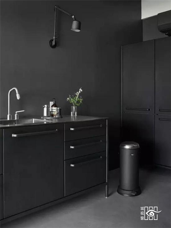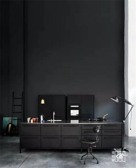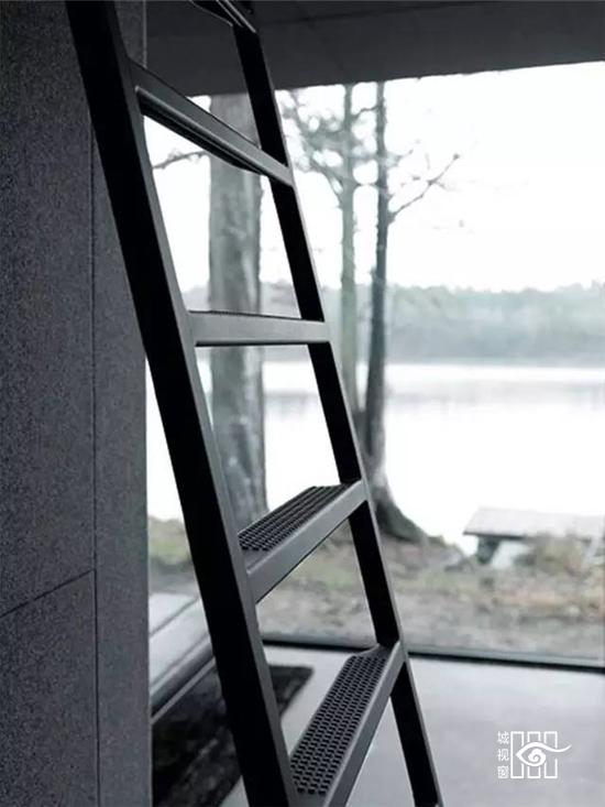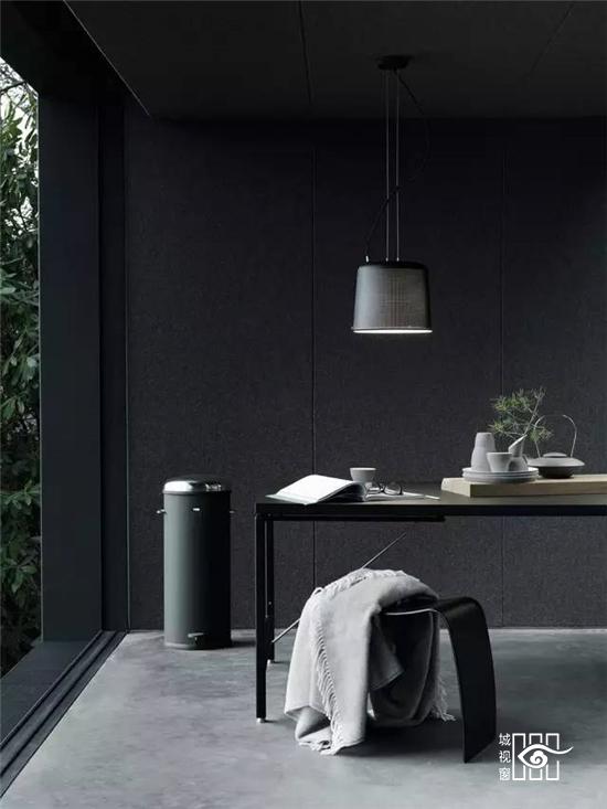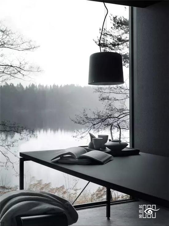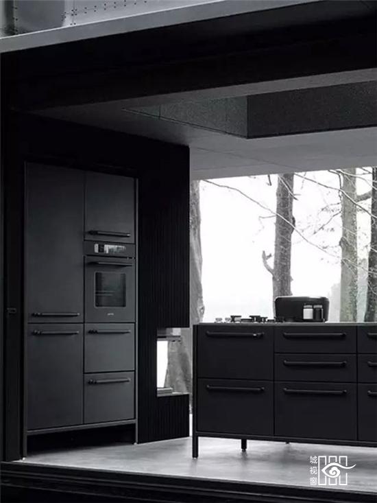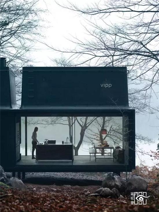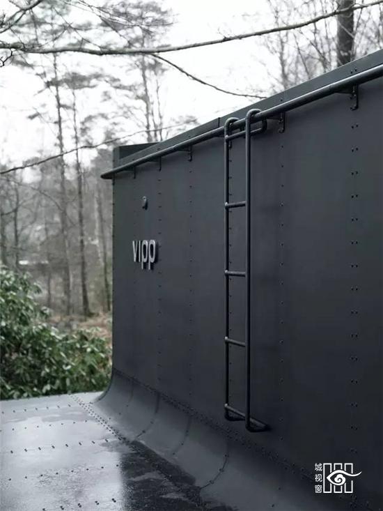 更值得一提的是不久前推出的“黑色铁皮盒子”,它被称作“Vipp住所”,更是将黑色工业风演绎的淋漓尽致,外表虽然与货柜的大小相当,家具与配饰皆出于Vipp的居家产品,从挂勾、楼梯、厨具到寝具,它可以短期搭建而成,当做度假小屋,如果按当下热词“性冷淡风格”来形容的话,这里绝对是一个远离都市冷淡到底的空间。