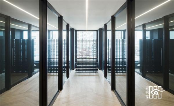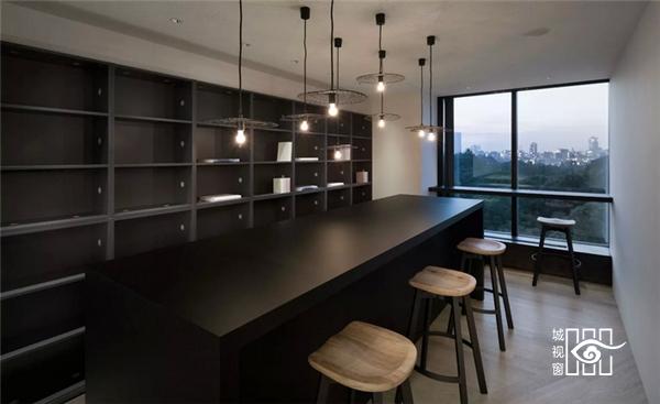 会客室则是半开放的空间,实用了不同材质的家具,让空间明晰地分隔开来。