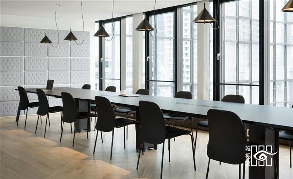 大窗户的设计让会议室拥有了极好的采光,适量的空间留白和深色家具搭配在一起,能给人沉静的感觉,打造出一个高效简洁的办公坏境。
