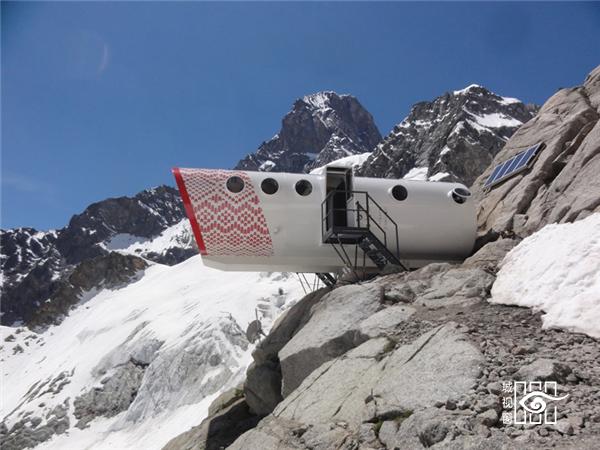 该酒店险峻的地理位置为登山爱好者们提供了庇护。它的地形很复杂,设计很简单。矗立在勃朗峰高高的岩层上,它现代的线条和简约的陈设引人侧目。