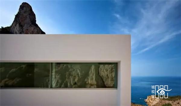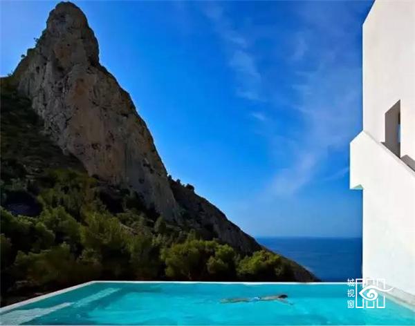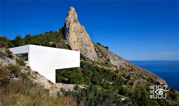 该项目位于西班牙卡尔佩安静的海湾,建筑非常有创意的设计,整个房子就像植入悬崖上般,俯瞰壮阔的港湾,仿佛有说不完的情话,与海对望,像情人般窃窃私语。