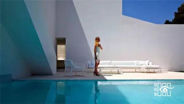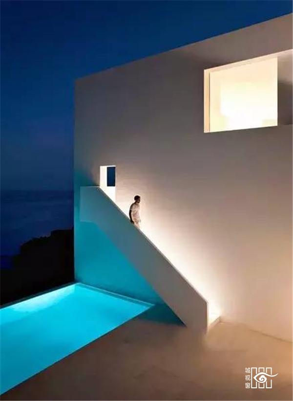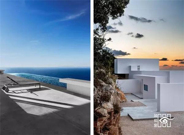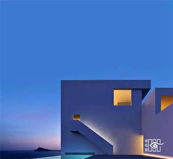这座白色的住宅位于希腊凯法罗尼亚的桑特岛上。整个岛仿佛处于大海中最蓝最洁净最深邃的地段。如此得天独厚之地,要在这上面设计住宅,建筑师理所应当的将景观作为最大的主题。