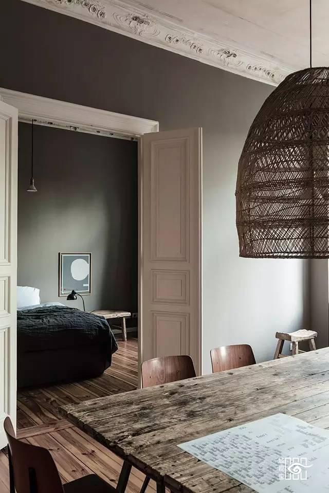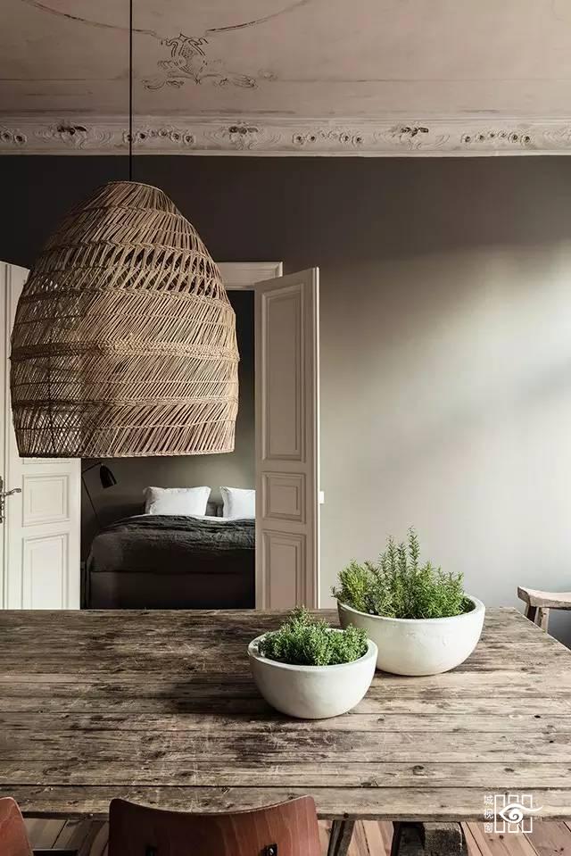 餐厅里,藤编吊灯、旧木板制成的餐桌、加上几把历经岁月的金属餐椅,不仅不会让人觉得陈旧,反而魅力十足。