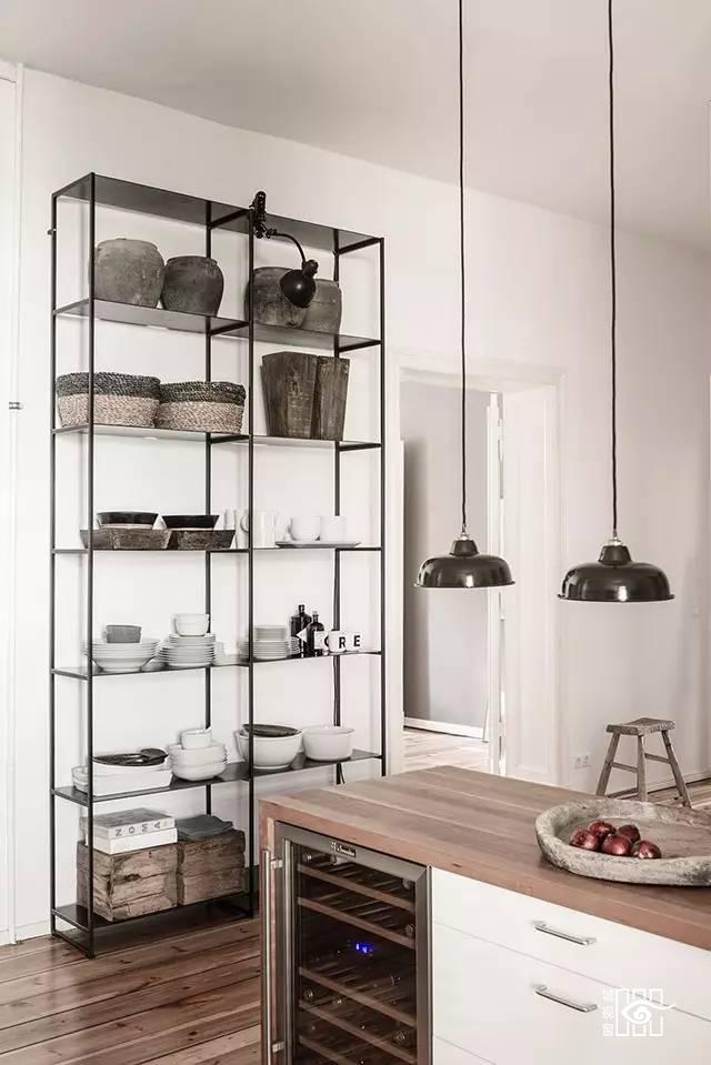 几乎同样的工业感手法配上厨房里的白色瓷砖。既是整个风格延续,又显得整洁明快。