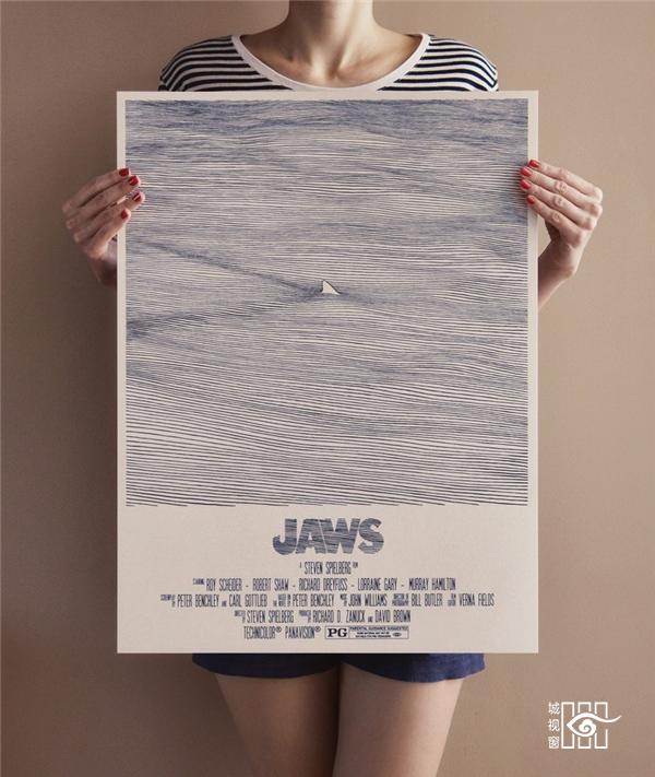以电影《大白鲨》(Jaws)为背景创作的海报,向这部经典致敬。