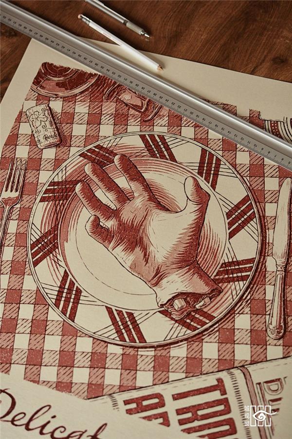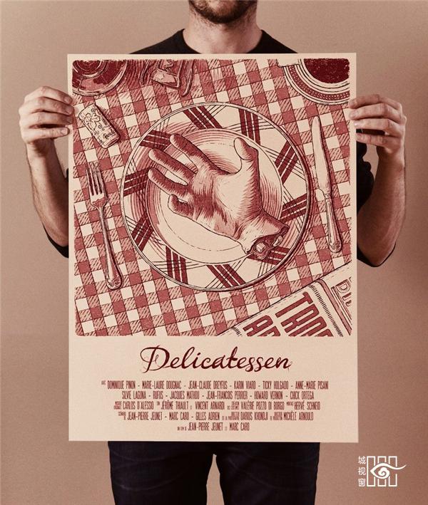 以电影《黑店狂想曲》(Delicatessen)为背景创作的海报