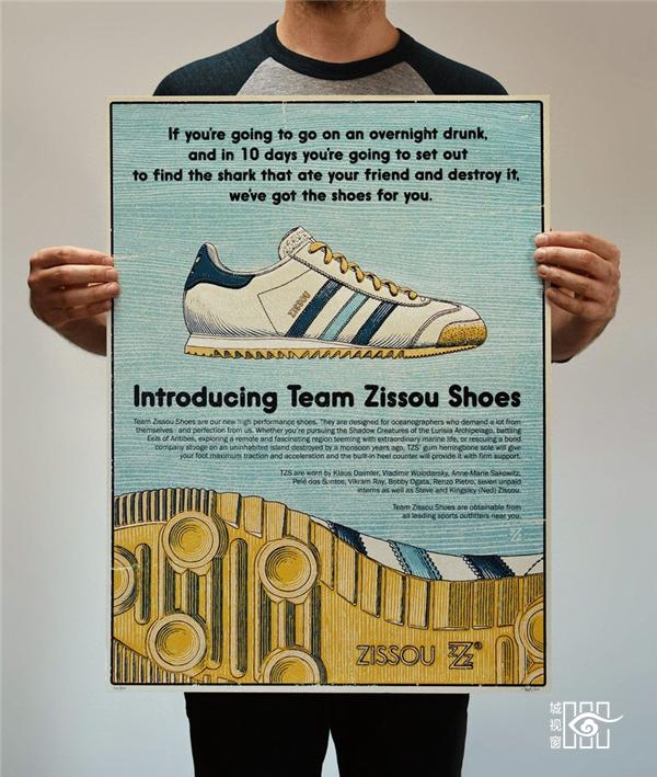 作品名为“Team Zissou Shoe”向导演Wes Anderson的电影《Life Aquatic》(水中生活)致敬