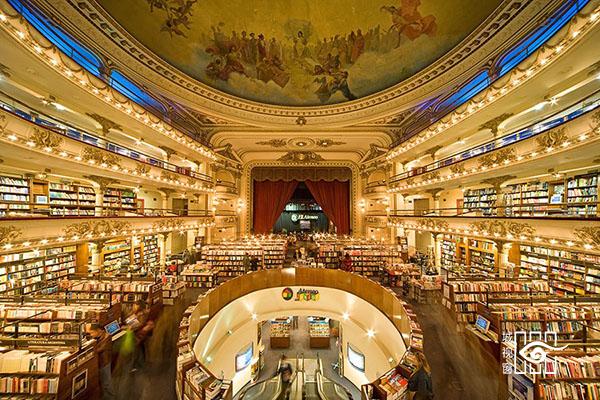 这家书店原本是剧院,始建于1919年,在1929时年改成电影院,后来再改成书店。在书店中,无论是天顶画、华丽雕刻还是红色的大布幕都有,Buenos Aires依然保留著当初的雄伟壮观,客人们可以坐在剧院包厢裡享受舒适阅读。