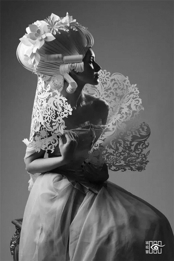 下面这组剪纸更是再现了著名的路易十六的玛丽皇后的逆天发型。