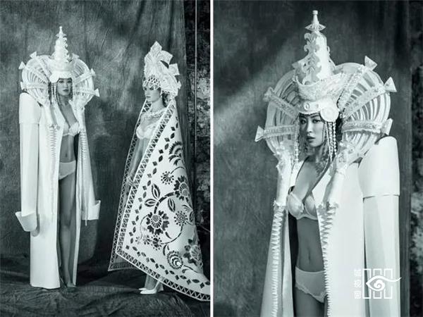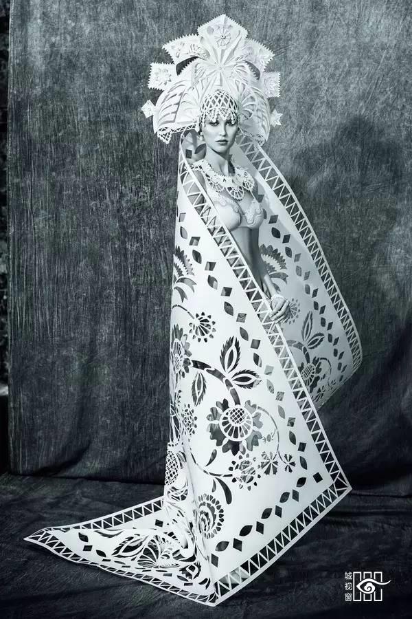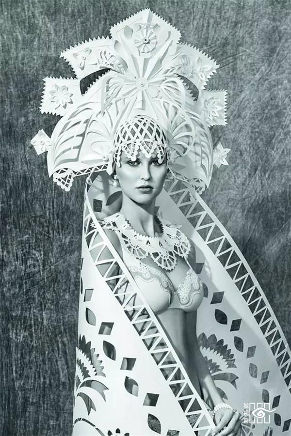 不纠缠于细节,讲求作品丰富性的Kozina,从蒙古族的婚礼服饰中吸取灵感,用自己的剪纸为蒙古族服饰注入了全新的生命。