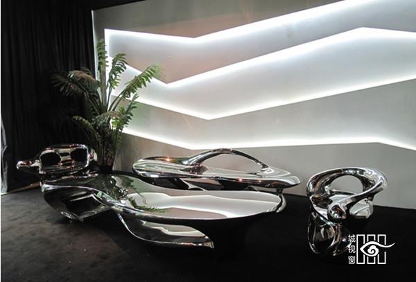 曾少豪:主要有两种材料,一个是玻璃钢就是玻璃纤维,另一种材质是不锈钢,对于不锈钢这种材料,大家平时的固化印象是它是死板的、有棱有角的、冰冷的,但是我们迪谱把这种材料做成了有流动性、温婉又具有色彩活力的产品。