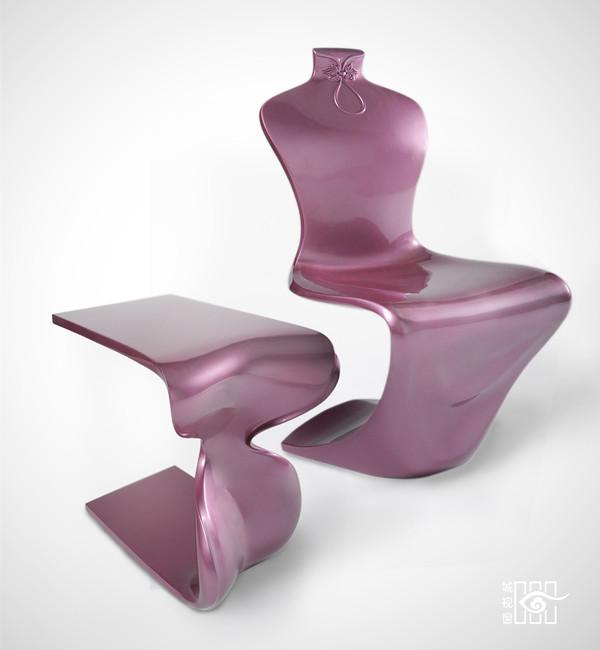曾少豪:迪谱的产品里有中国元素的系列产品是旗袍,这个系列的产品是以中国旗袍为元素造型设计的一款椅子,还有一个茶几和官帽椅,还有一个做成了青花瓷的样式,但是很遗憾这次没有参展。