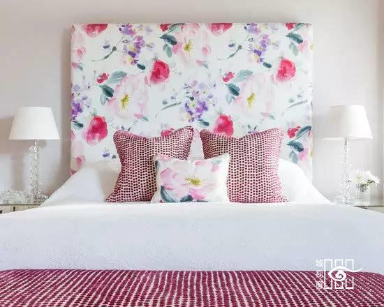包罗万象的白色里,渲染的花朵床头板,清新雅致。床头的灯具,水晶支柱在夜晚的灯光下散发浪漫情调。