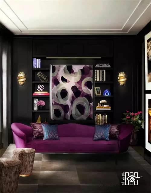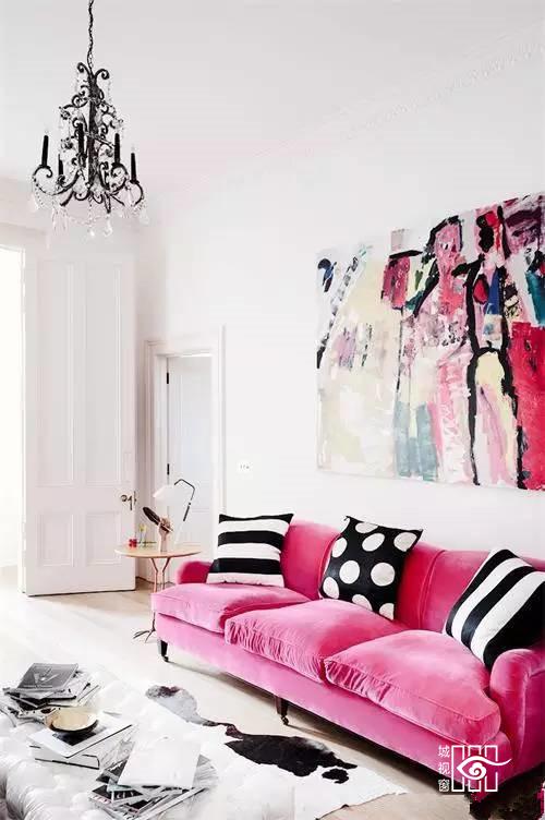 莓果色沙发娇媚又复古,略带小浮夸却丝毫不影响精致优雅范。