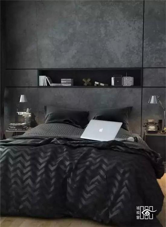 一般来说,男人的卧室没有华丽的装饰,也无需缤纷的色彩,它的设计以黑白灰等冷色系为主,在酷炫吊炸的风格中释放出简约大气之美,甚至是狂放的艺术气息。但是,如何在看似简单的设计中演绎出个性的特质,使人眼前一亮呢?看看下面的卧室设计,或许可以有所启发哟!