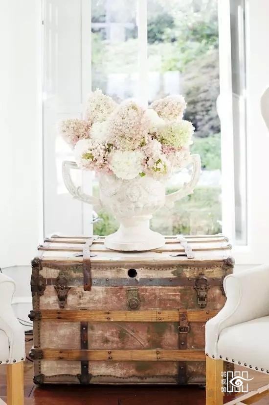老式的原木箱子配以斑驳的金属镶边和搭扣,置于家中便是一件不可多得的艺术品。在不失储物功能的同时,营造出欧式优雅复古的格调。