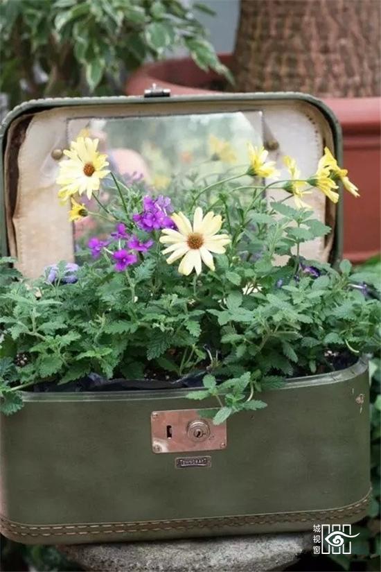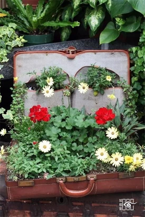 行李箱也能种花?稍作修饰,添点泥土,皮革的复古邂逅鲜花的曼妙,一个文艺的花盆浑然天成。