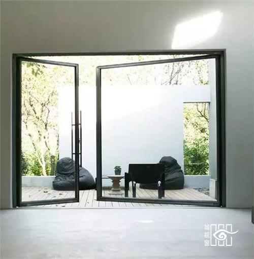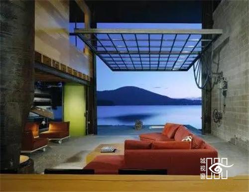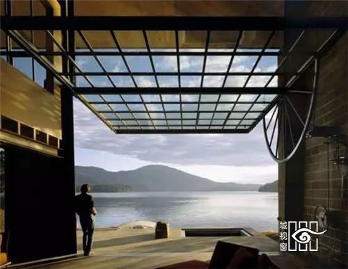 ▲打开之后,大门变成露台的挑廊,将室外的景色尽收眼底。