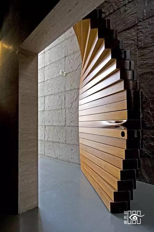 ▲这是最优雅的门,用40条柚木组成,推开时会像扇子一样打开,形成优雅的曲线。