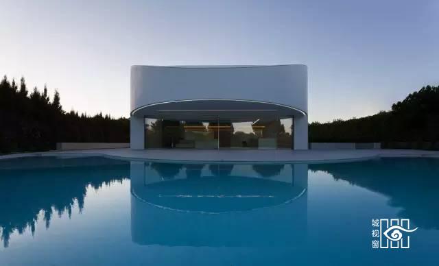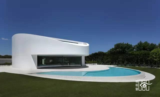 瓦伦西亚高尔夫球场附近的巴林特住宅是一栋从椭圆型衍生出来的房屋,拥有两个方向的主要景观,房子正前方的半圆形泳池映衬着整个白色的建筑。