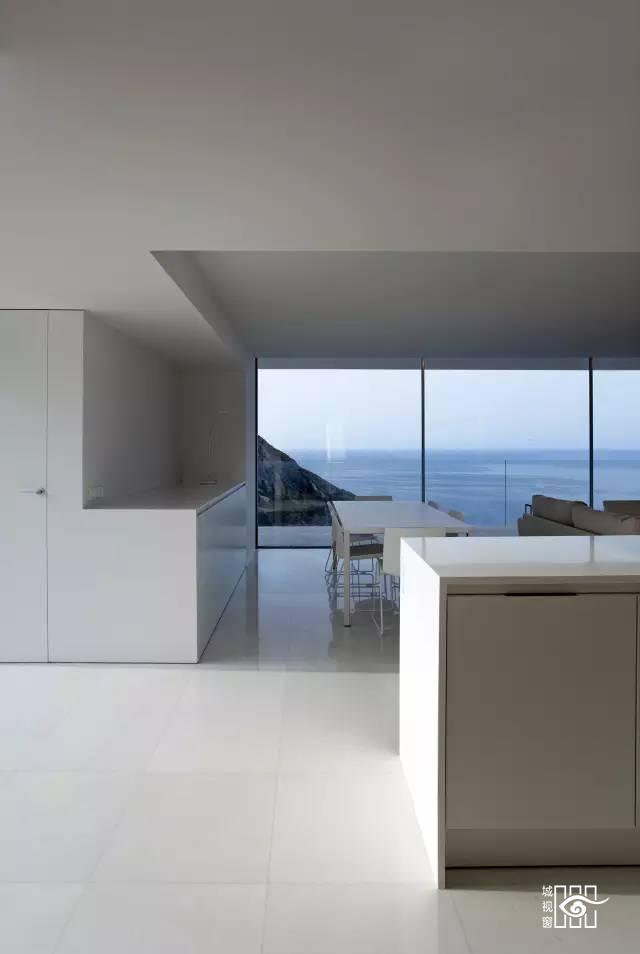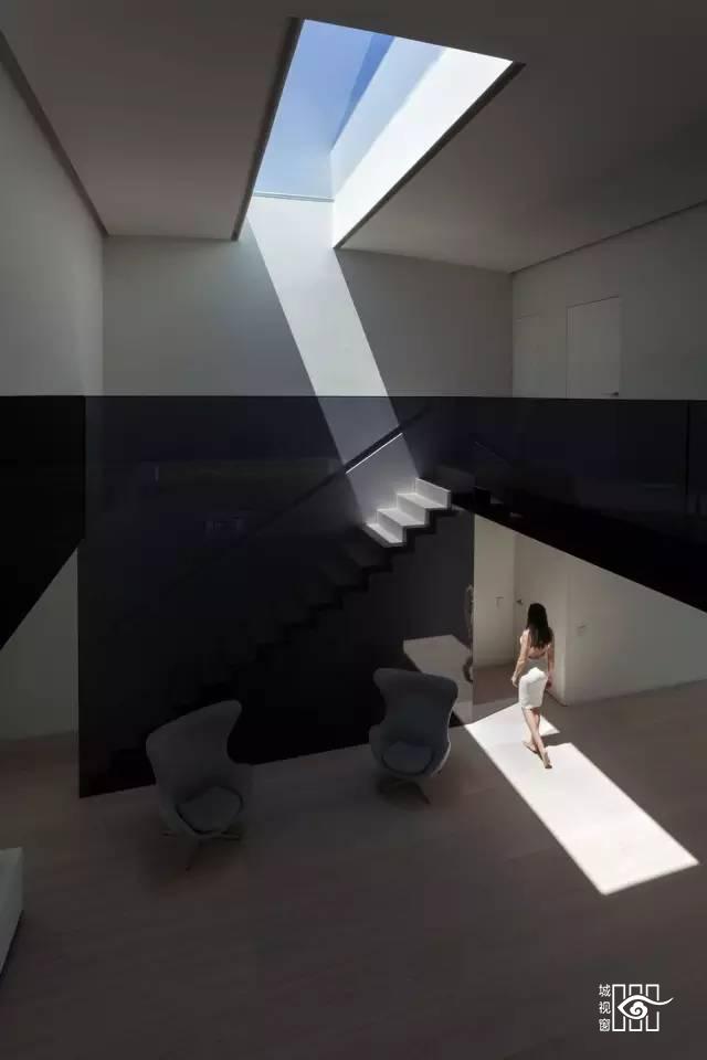 有着陡翘的钢筋混凝土楼梯,游泳池被放置在一个较低的水平,然后通过消石灰的灰泥覆盖,材料,墙壁,屋顶上的碎石都保持着相近的颜色,继承该地区的传统建筑风格。