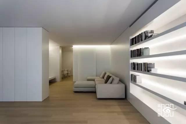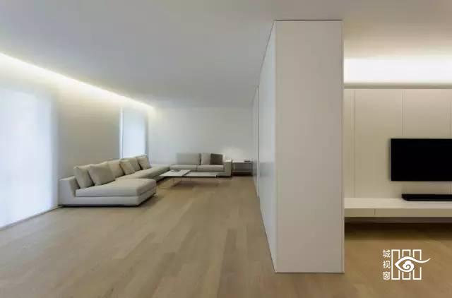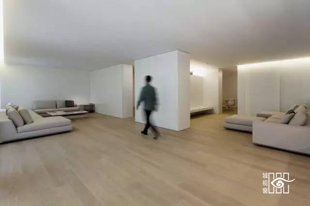 住宅内部是由家具和推拉门,划分出一个开放的连续空间,室内就形成自由灵活的生活动线,通过地板和灯光呈现出来的暖色调,让住宅形成了典雅的空间特性。