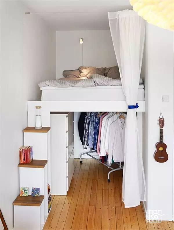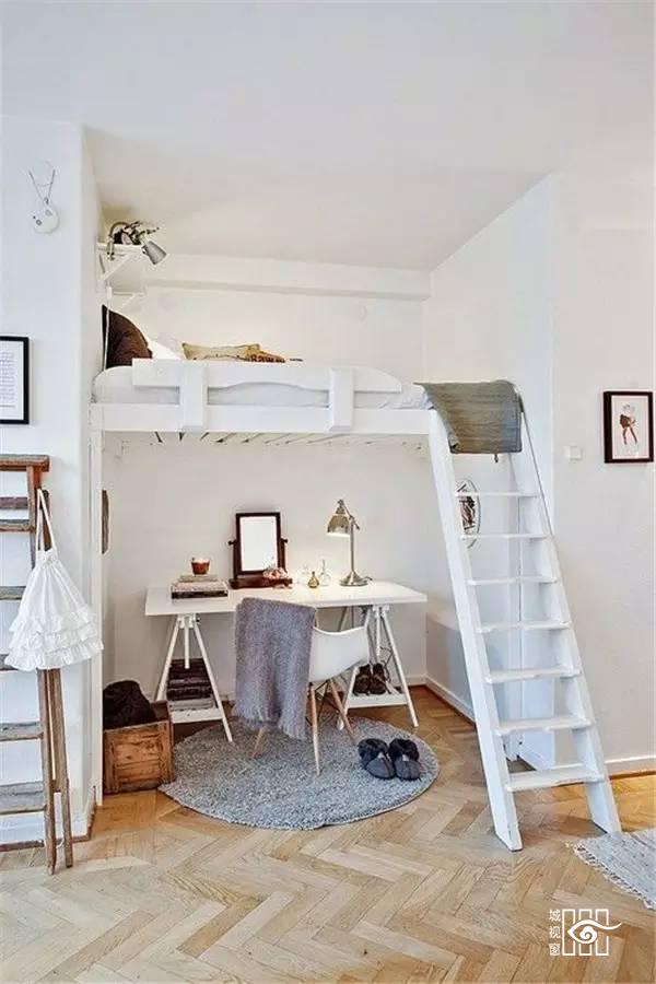 家里空间小,但是又不想太挤太将就,那么只能这样睡了。把原本床占领的空间挪到空中,而床下的空间就可以用来储物、办公、学习......一切都妥妥的。