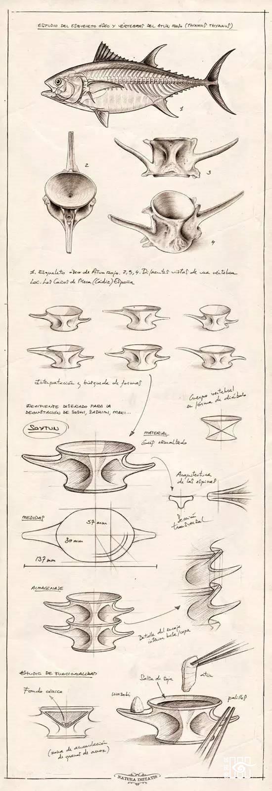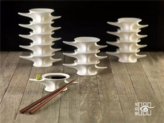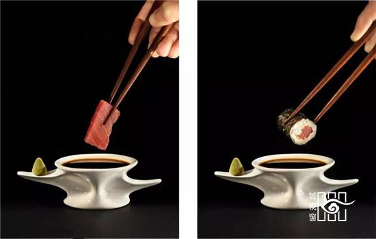 这是一块陶瓷调料碟,灵感来自鱼骨,是西班牙设计团队photoAlquimia的作品。这组产品不仅拥有切合主题的外形,也是相当实用。中间碟内可放置酱油,左右一高一低的位置可放置芥末和筷子。包装采用环保纸,充满的自然的保护和尊重,透露了设计师在深思熟虑的设计中包含对自然的热爱。