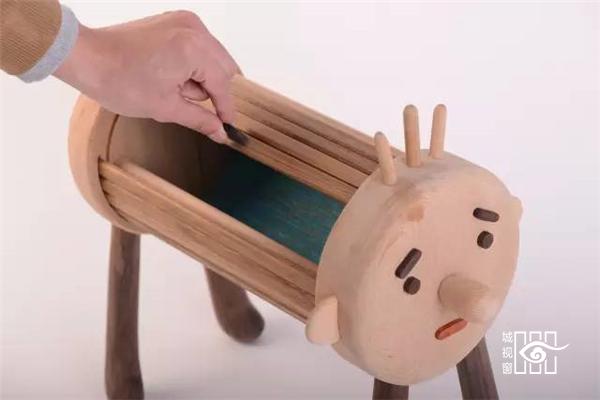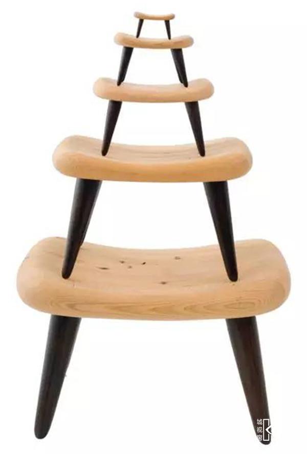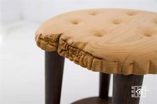 而这些表面的痕迹,都是因材料制宜,木材本身饱经风霜,被虫蛀去了一角,这款饼干凳便做成被咬过的造型。